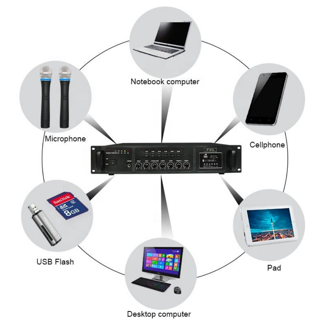 Âm ly 6 vùng riêng biệt FSL PA-5150USBD được thiết kế để đáp ứng nhu cầu khuếch đại âm thanh đa vùng trong các không gian thương mại như quán cafe, nhà hàng, khách sạn, văn phòng hay hội trường. Với công suất định mức 150W, sản phẩm mang lại âm thanh ổn định, rõ ràng và linh hoạt khi quản lý nhiều khu vực cùng lúc.