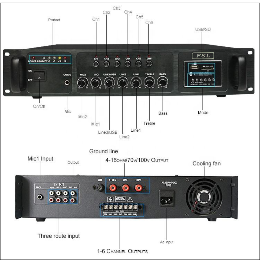 Âm ly 6 vùng riêng biệt FSL PA-5150USBD