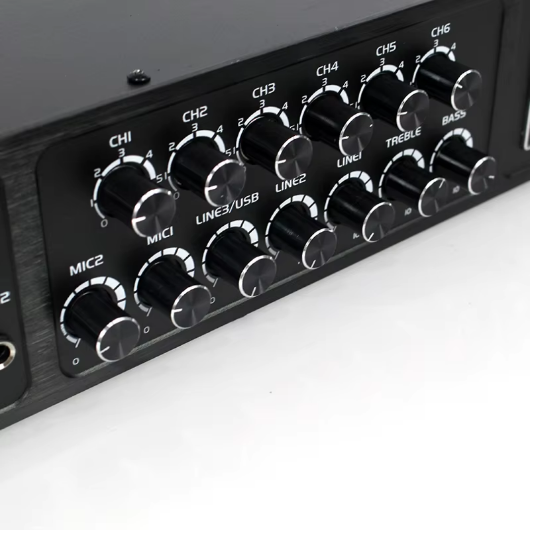 - Chức năng: Điều khiển độc lập 6 kênh, Bluetooth, USB, USD, FM, Micrô ưu tiên