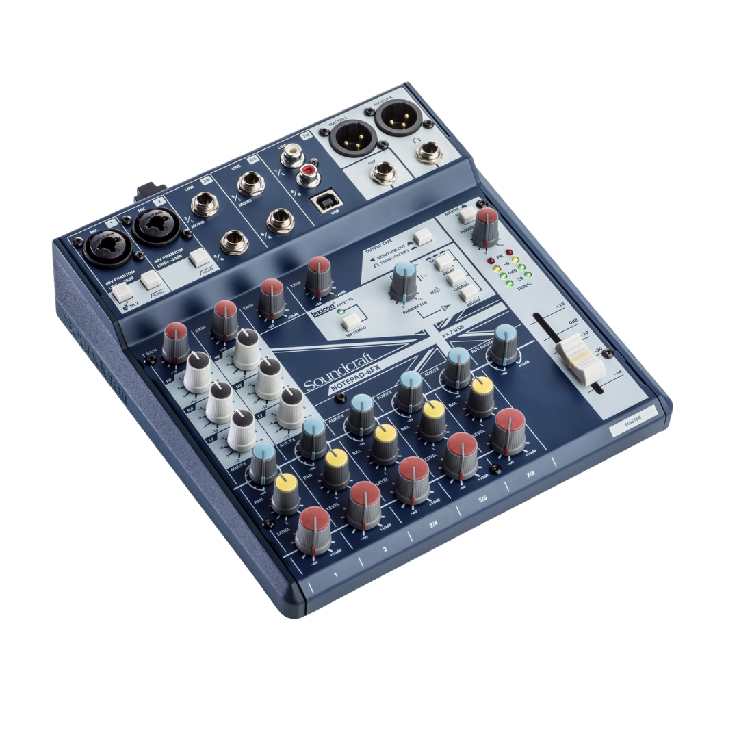 Mixer analog Notepad-8FX là giải pháp hoàn hảo cho những ai tìm kiếm thiết bị trộn âm nhỏ gọn nhưng chuyên nghiệp. Với hiệu ứng Lexicon® phòng thu, giao diện USB tích hợp, chất lượng âm thanh Soundcraft huyền thoại cùng thiết kế bền bỉ, sản phẩm đáp ứng toàn diện mọi nhu cầu từ sáng tạo nội dung, thu âm cho đến biểu diễn trực tiếp.