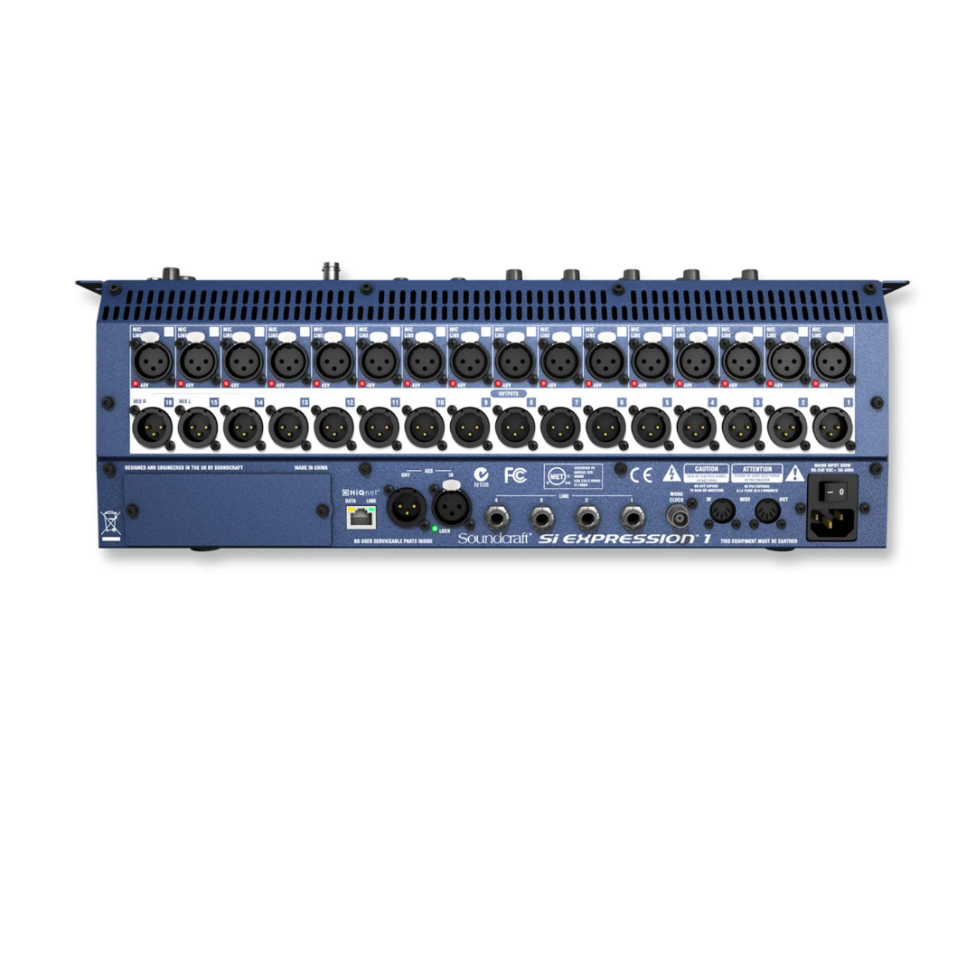 Soundcraft Si Expression 1 được trang bị 16 đầu ra line balanced, AES out, headphone monitor, cùng khe mở rộng 64x64 giúp dễ dàng tích hợp với các thiết bị âm thanh chuyên nghiệp khác.